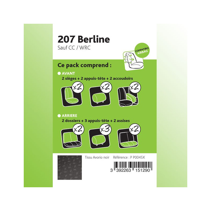 Customized seat cover FOR PEUGEOT 207 BERLINE