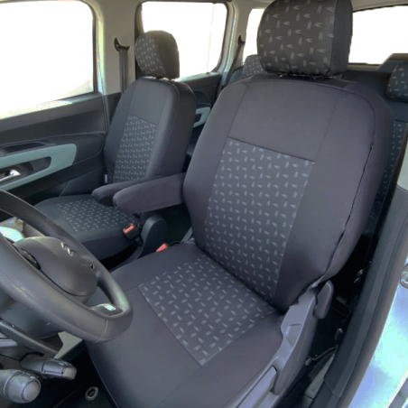 Your original fabric will be completely covered: headrests, central armrest, armrest glove box, ... The covers will be perfectly adapted to your seats, custom made!