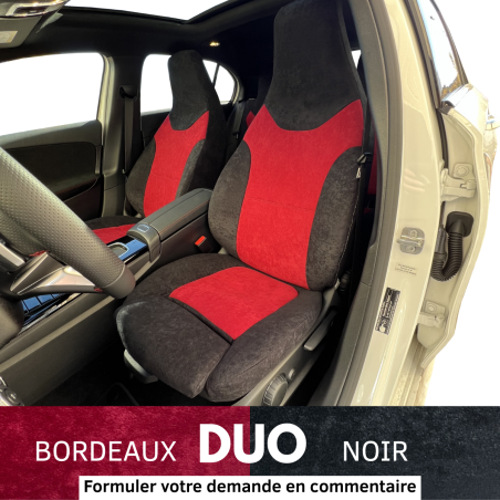 Your original fabric will be completely covered: headrests, central armrest, armrest glove box, ... The covers will be perfectly adapted to your seats, custom made!