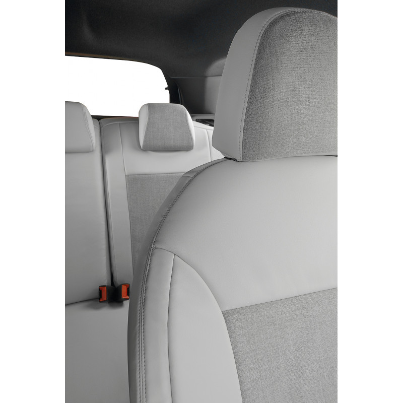 Your original fabric will be completely covered: headrests, central armrest, armrest glove box, ... The covers will be perfectly adapted to your seats, custom made!